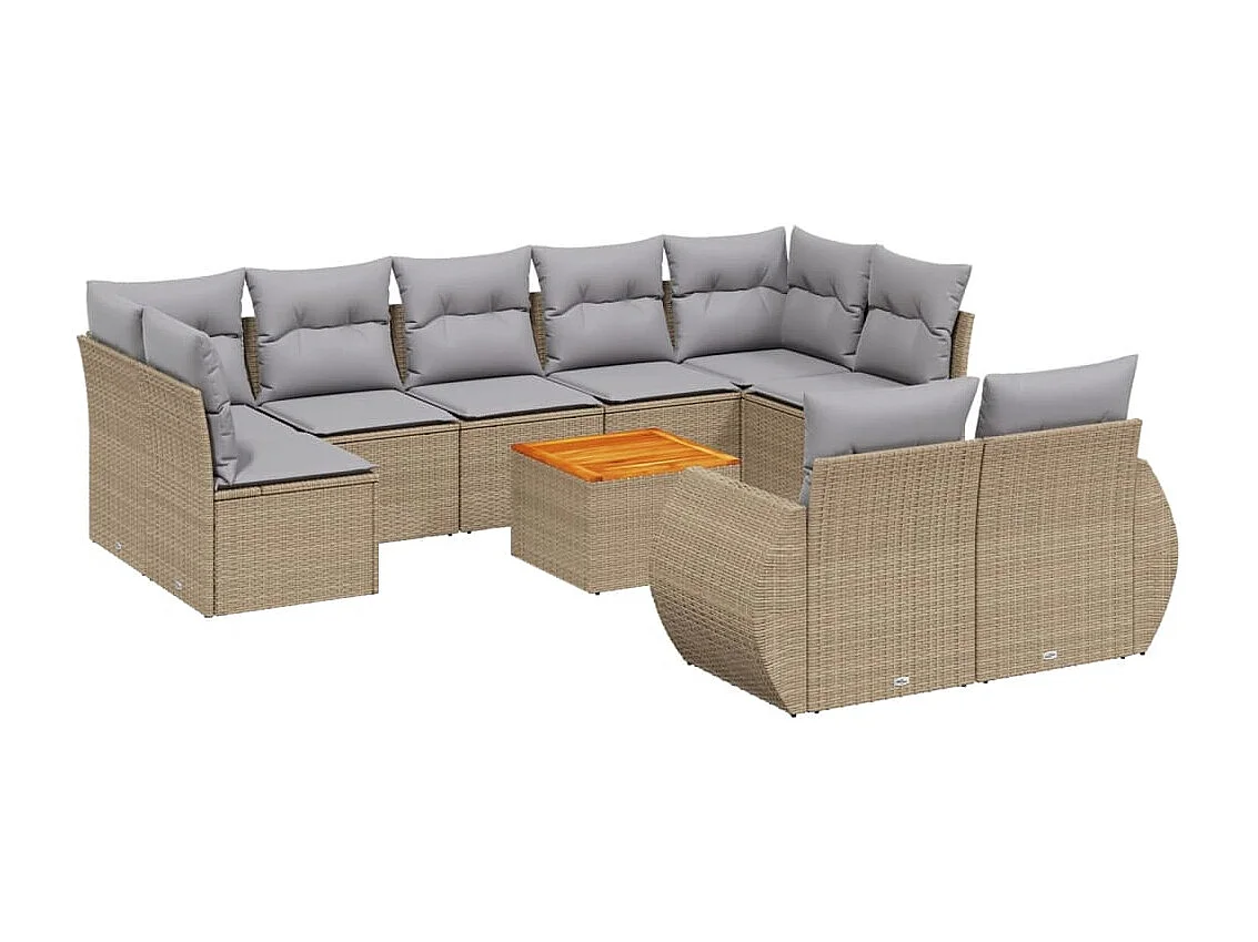 Salon de jardin avec coussins 10 pcs beige résine tressée