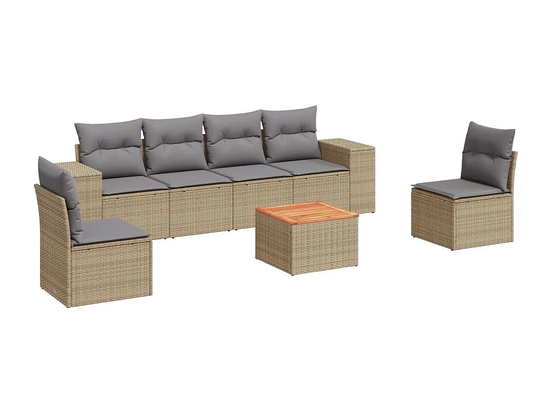 Salon de jardin avec coussins 7 pcs beige résine tressée
