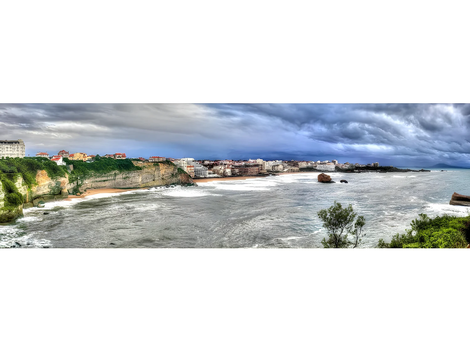 Tableau sur toile Biarritz mer grise 30x97 cm