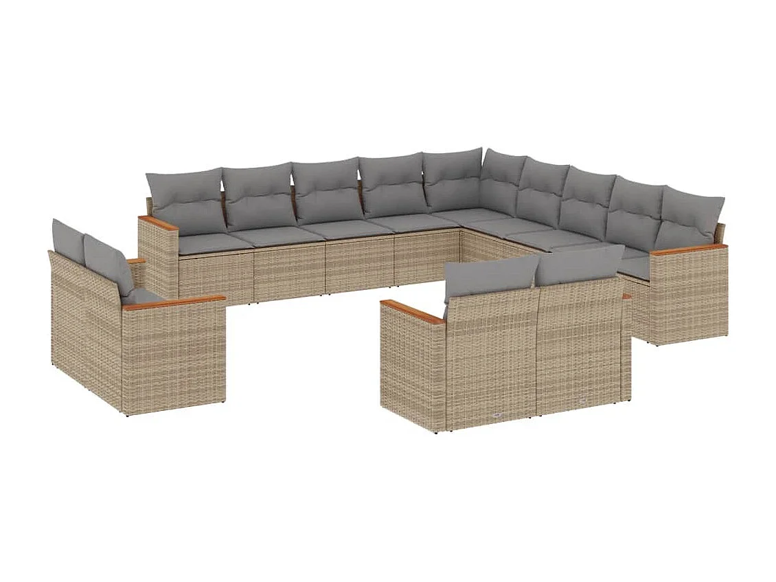 Salon de jardin et coussins 13 pcs mélange beige résine tressée