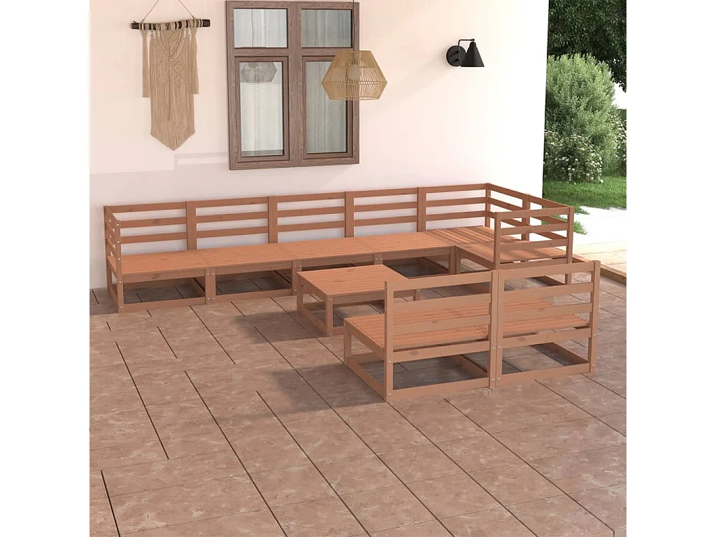 Salon de jardin 9 pcs marron miel bois de pin massif