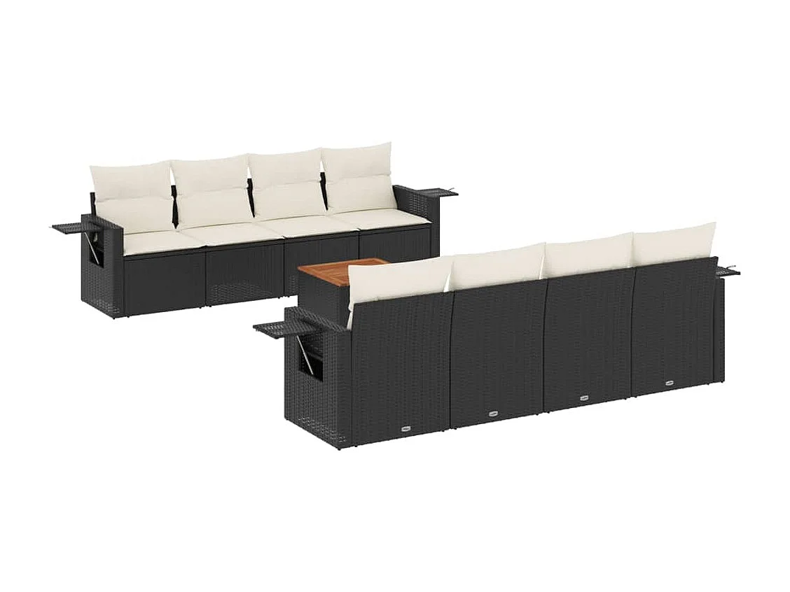 Salon de jardin 9 pcs avec coussins noir résine tressée