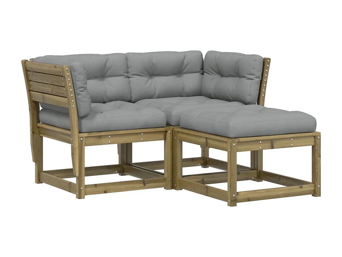 Salon de jardin 3 pcs avec coussins bois de pin imprégné